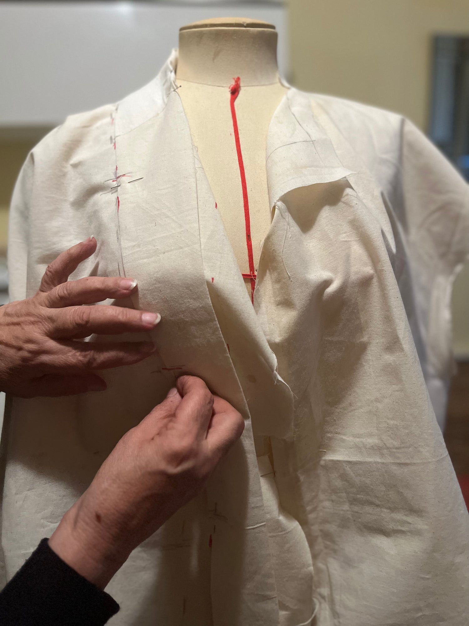 Afin de ne pas produire de grandes quantités de tissus, les matières proviennent de stocks de différentes maisons et de divers fabricants. Les quantités sont limitées.